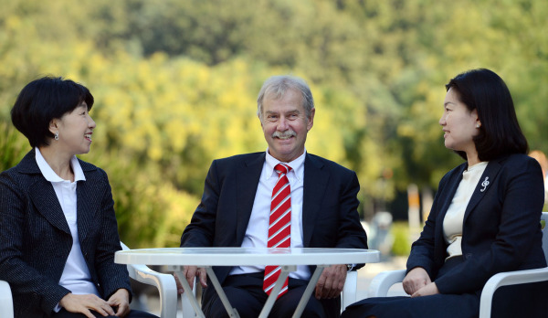 sein Konzept vor und faszinierte das zahlreich erschienene Publikum mit seinen praktischen Erfahrungen zur Frage “Kann man Glück lernen?”. Die "Korean Times" griff die Anregungen auf und